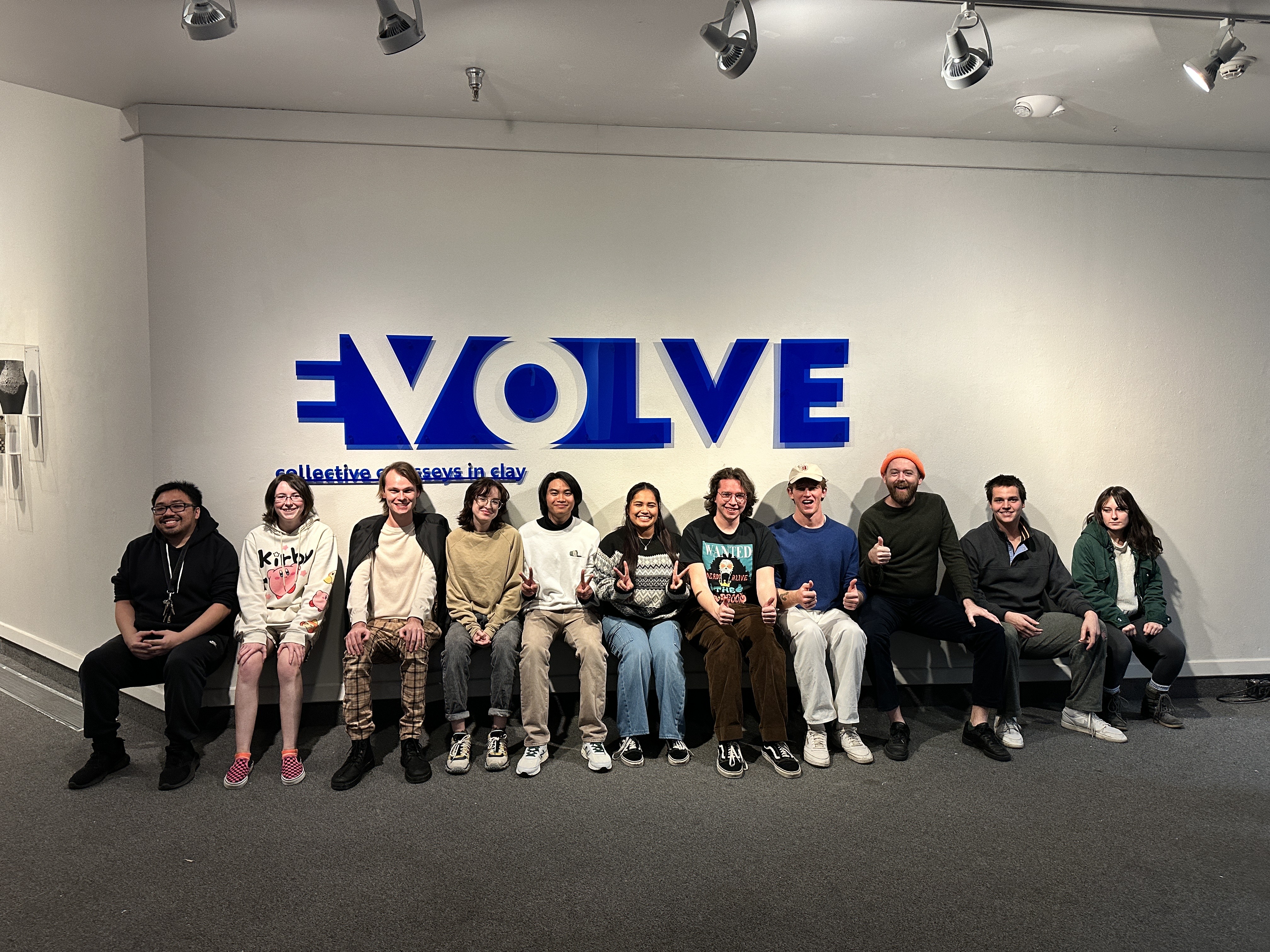 The TAG TEAM 2025 Internship worked to produce an Exhibition Identity for the Art Gallery at the University of West Florida. EVOLVE was an exhibition of student ceramics work, and accomplished through a collaboration between the museum studies class and TAG. TAG Team Designer Parker Hassebrock designed an exhibition identity and environmental title wall installation. His work was accomlished with the help of SEA Makerspace’s laser engraver to cut colored acrylic sheets. The color is representative of traditional korean and dutch pottery glazing, but with a very contemporary material.