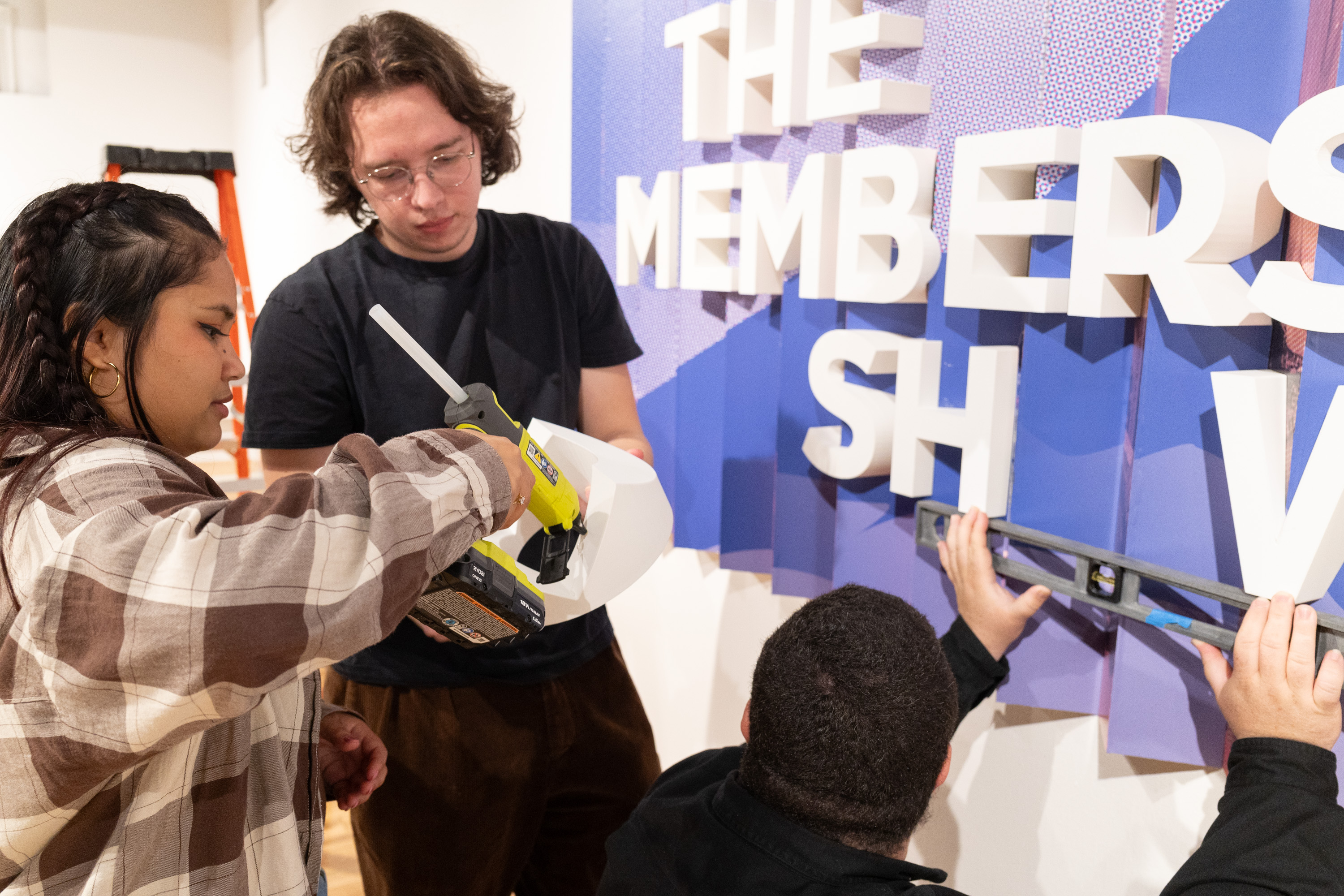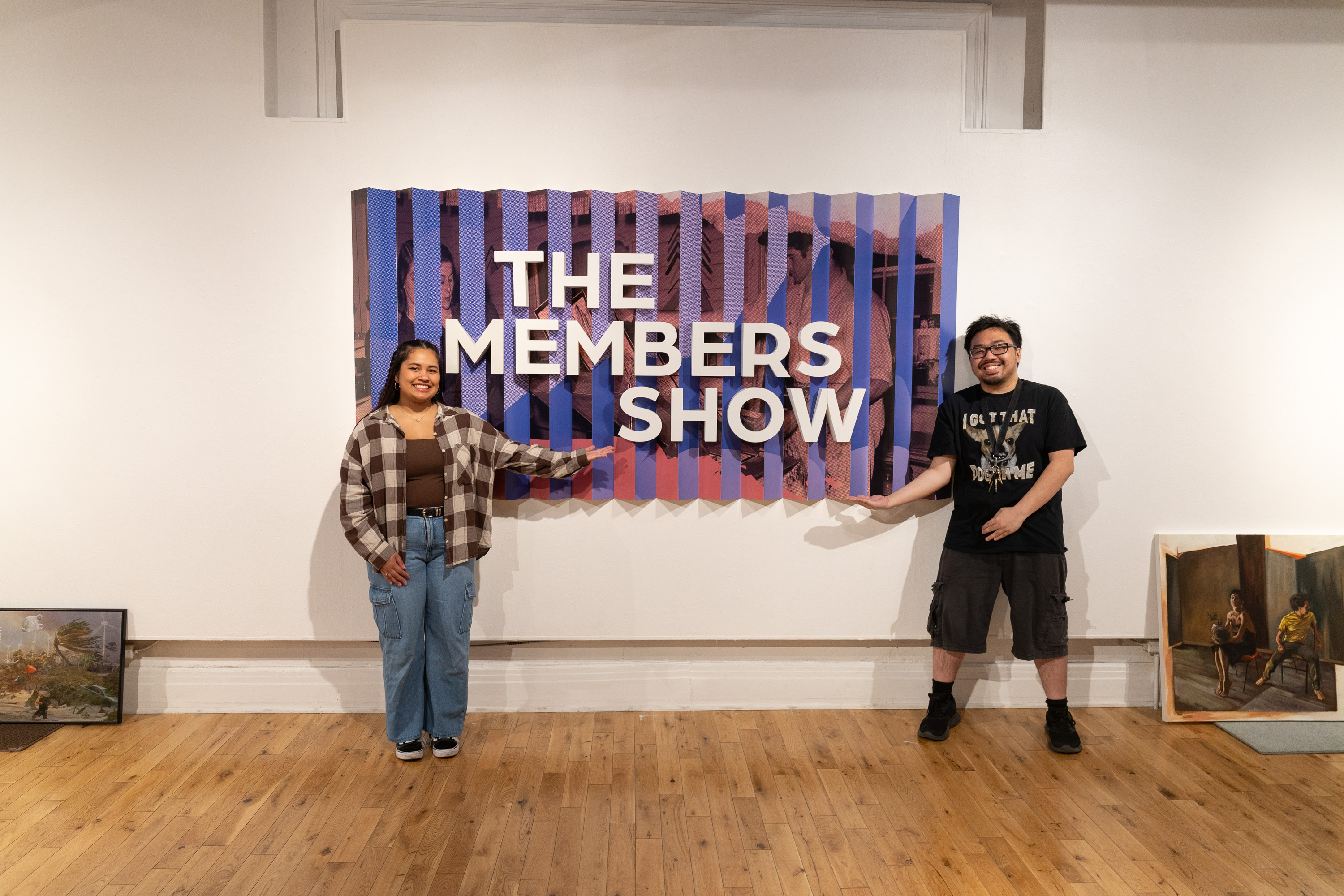 The TAG TEAM 2025 Internship worked to produce an Exhibition Identity for the Pensacola Museum of Art’s Annual Member’s Show. The designers for the project were Benjamin Nguyen and Lalita Estrada, University of West Florida Graphic Design majors. The exhibition identity consisted of a dual-color system, based around a goal of creating a large-scale lenticular print for the exhibition title graphic. The designers choice to create 3D printed letterforms that interfaced with a built structure for the lenticular effect, allowed for the title of the exhibtion to be viewable at all angles in addition to contrasting the printed graphic.